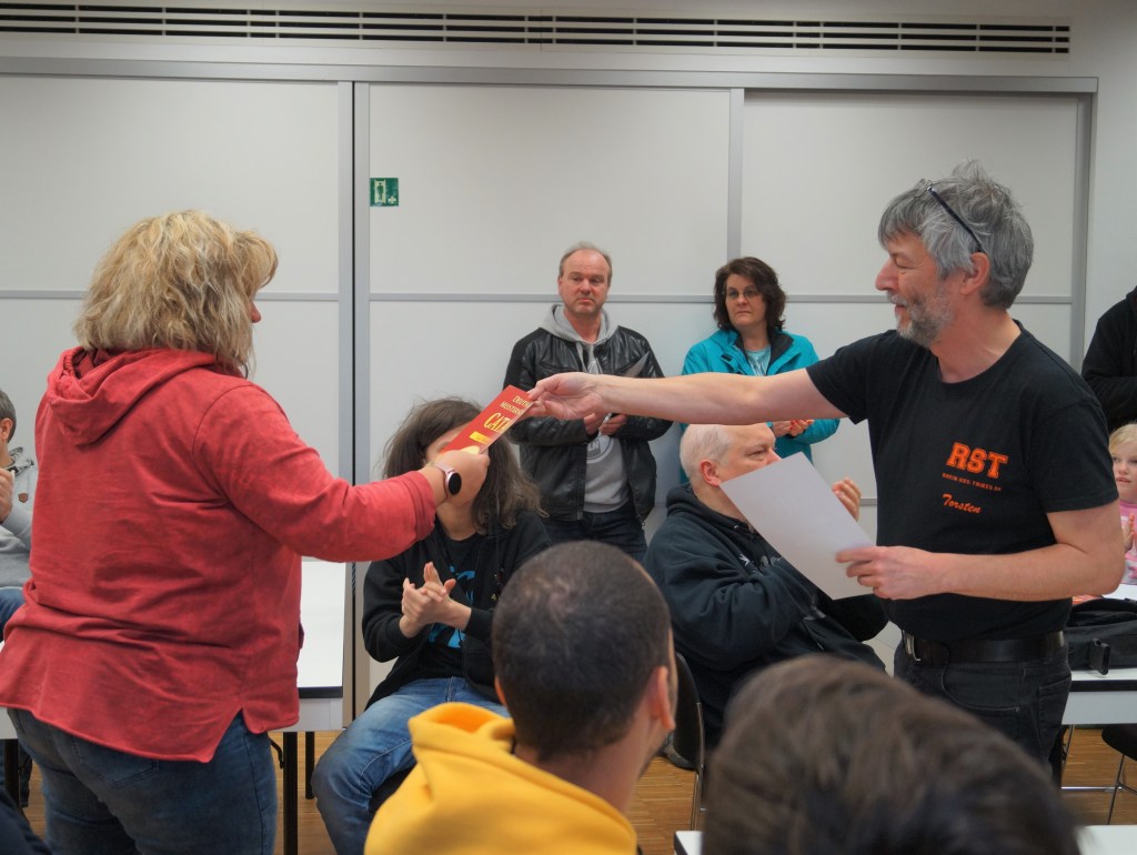 Herr Lassmann fungierte als Mitorganisator und Turnierleiter. Nach einer kurzen Begrüßung, ging es auch direkt los. Der Turnierverlauf sah 3 Runden vor, die mit dem Basisspiel bestritten wurden. Die Mitspieler*innen wechselten nach jeder Runde die Spieltische, sodass sich so neue Spielgruppen ergaben.