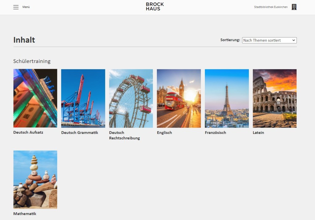Durch dieses E-Learning-Angebot des Online-Brockhaus habt Ihr Zugriff auf verschiedene Lern-Module der Schulfächer Deutsch, Englisch, Mathematik, Französisch und Latein.