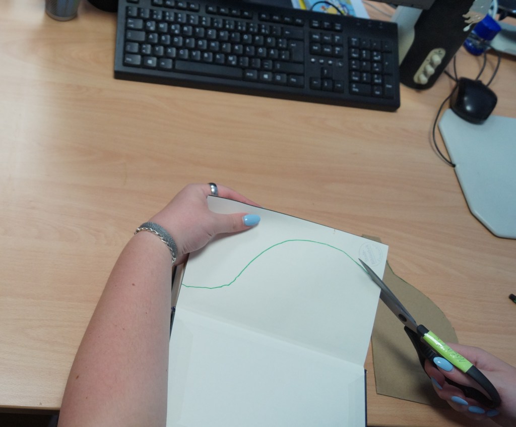 Diese Skizze malt ihr jetzt auf eure Pappe und macht daraus eine Vorlage. Vorsicht! Die Vorlage sollte am besten genauso groß wie das Buch sein.