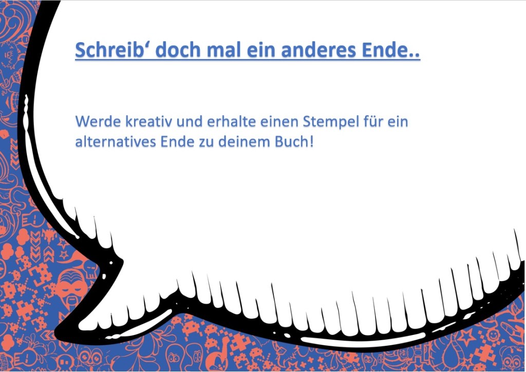 Sende dein alternatives Ende an sommerleseclub@euskirchen.de und erhalte einen Bonus-Stempel, in deinem Online-Logbuch, für deine tolle Geschichte.