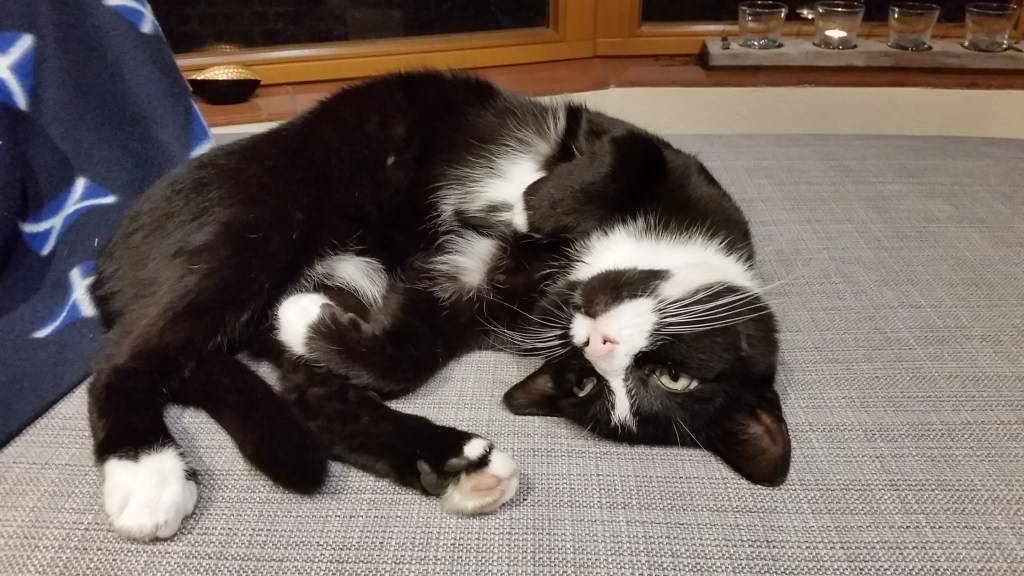 Leider teilt mein Kater meine Liebe zu Büchern definitiv NICHT! Mit jeder Minute in der ich lese, vergeht eine Minute, in der er scheinbar keine Aufmerksamkeit bekommt. Deshalb setzt er sich jedes Mal auf meine Bücher und starrt mich böse an.