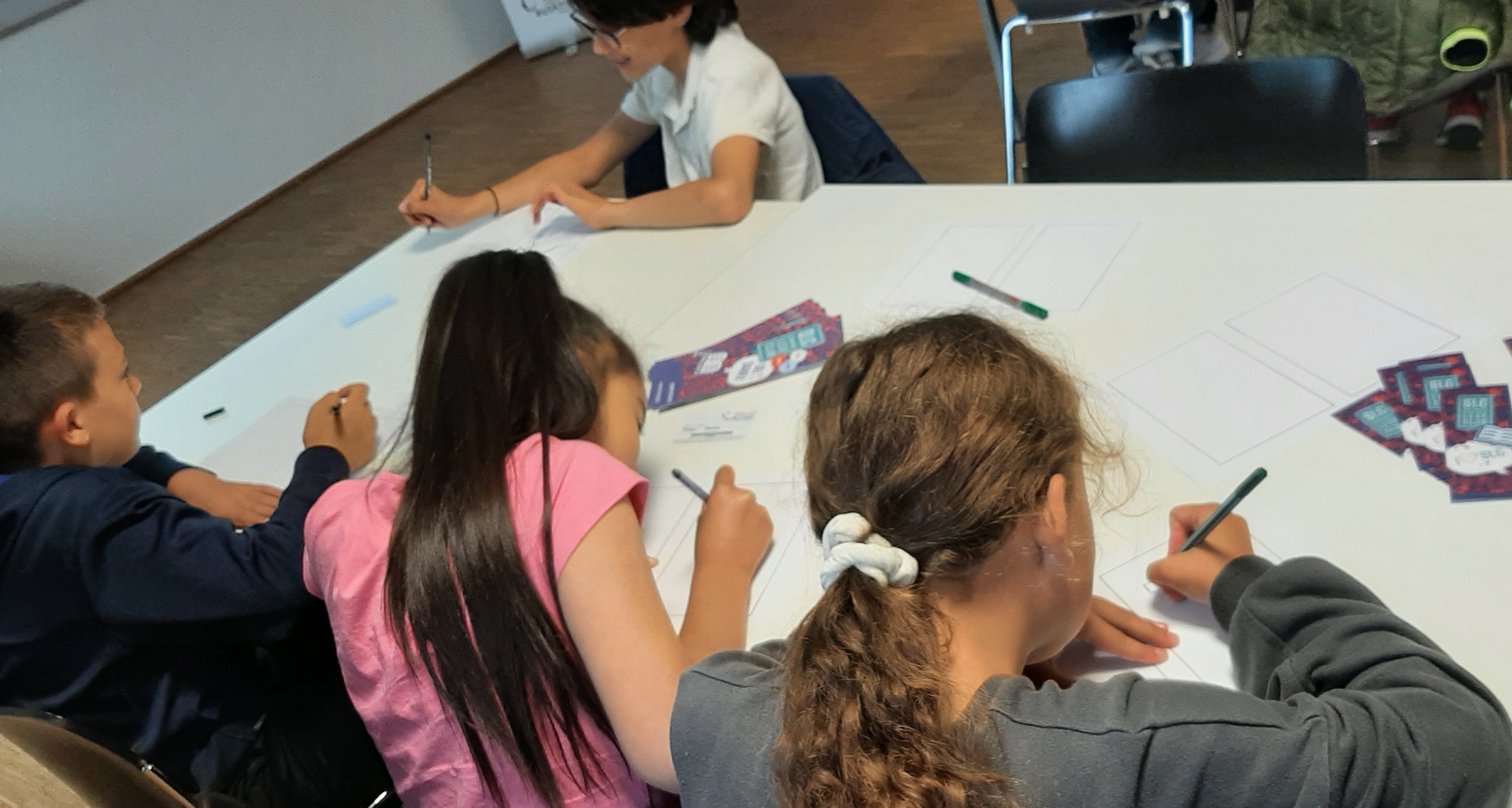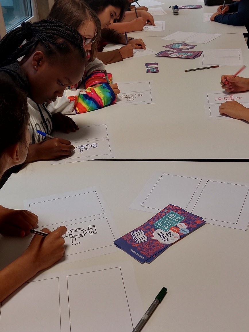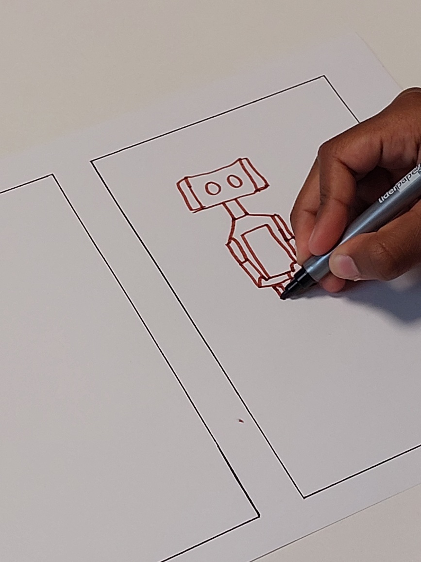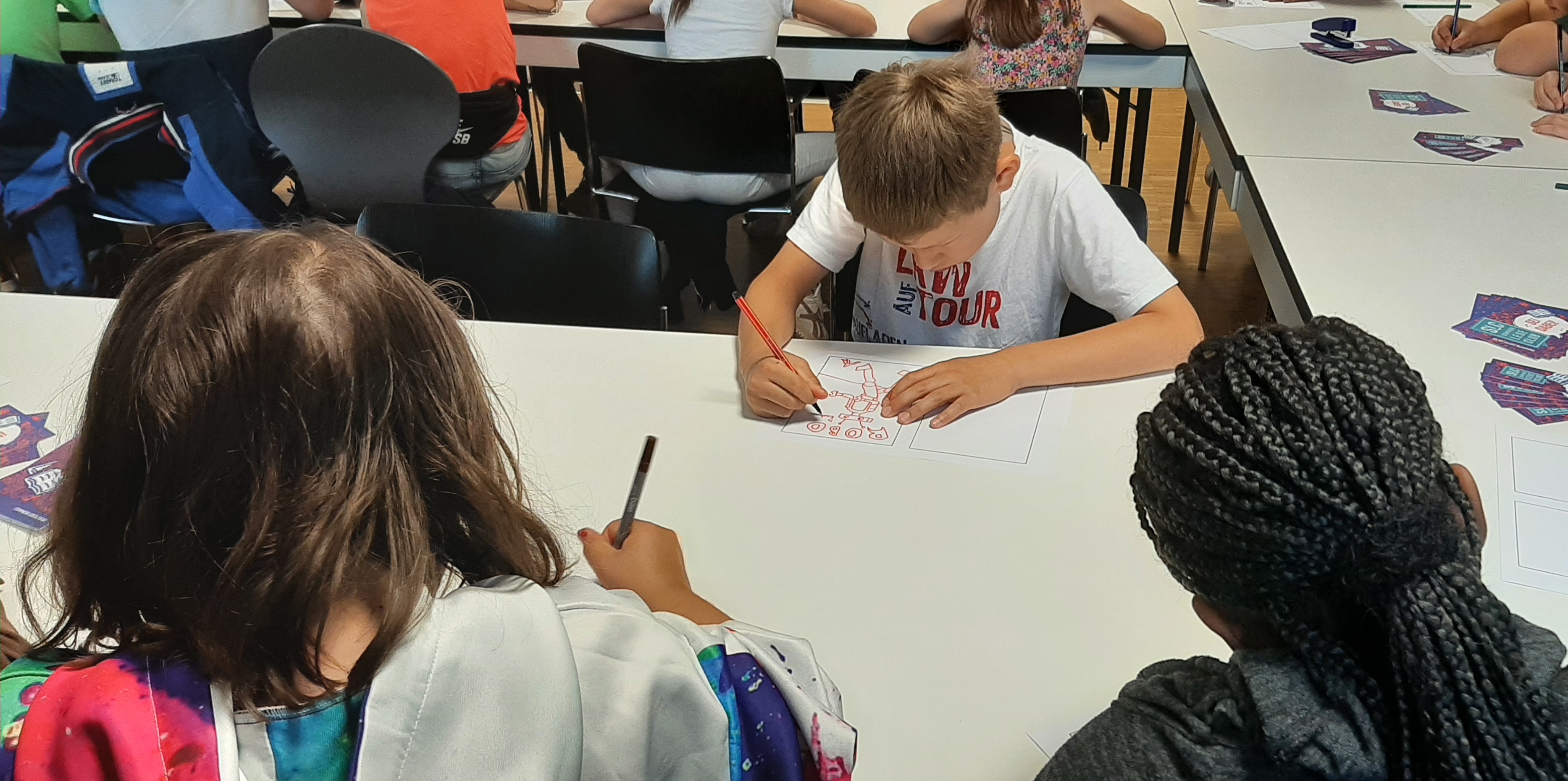 Zunächst einmal mussten sich die Kinder für eine Hauptfigur ihres Comics entscheiden. Ins Rennen gingen Affi, Ninja Girl oder Robo. Schnell war entschieden, dass Robo der Held des selbst gestalteten Comics werden sollte.