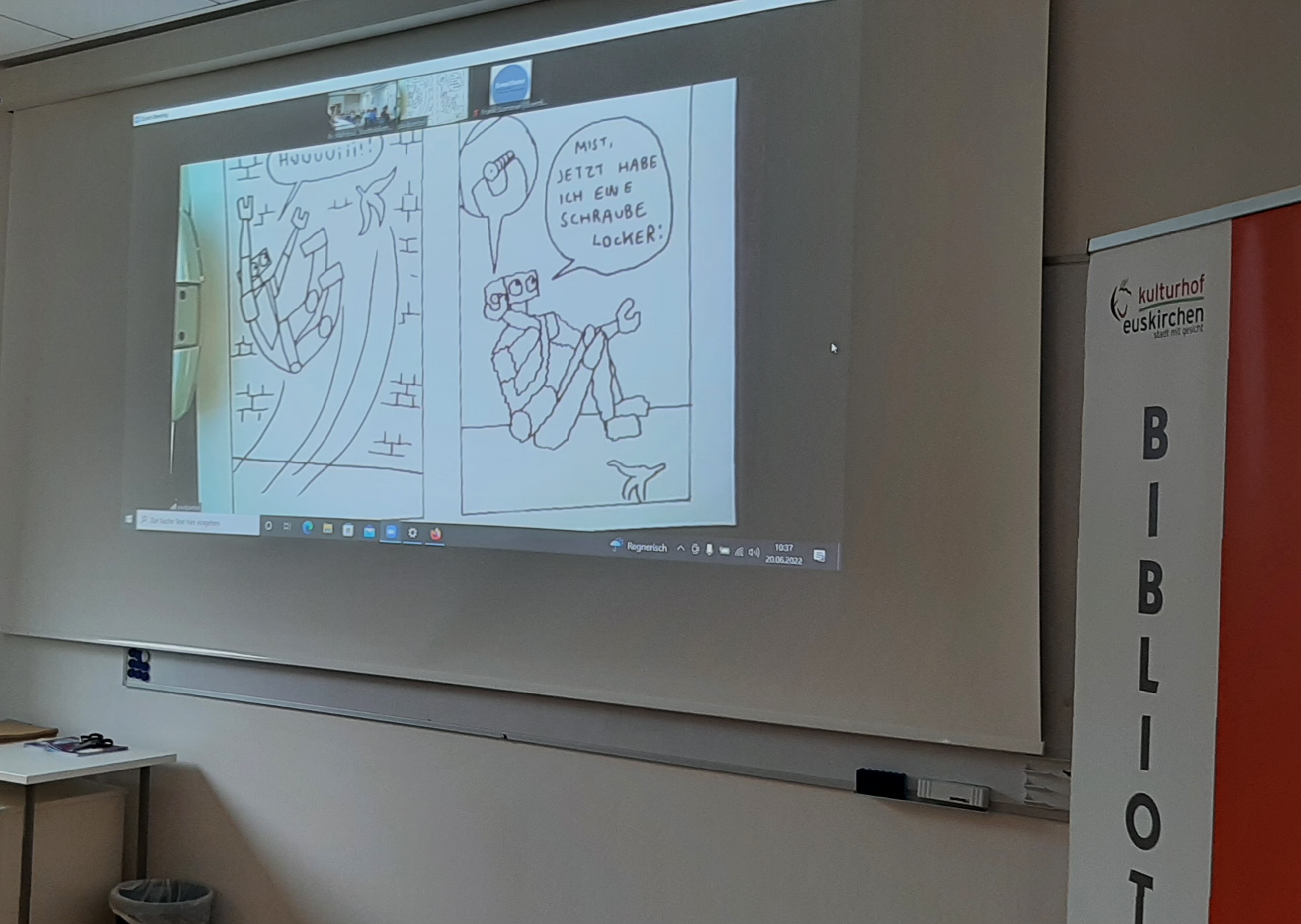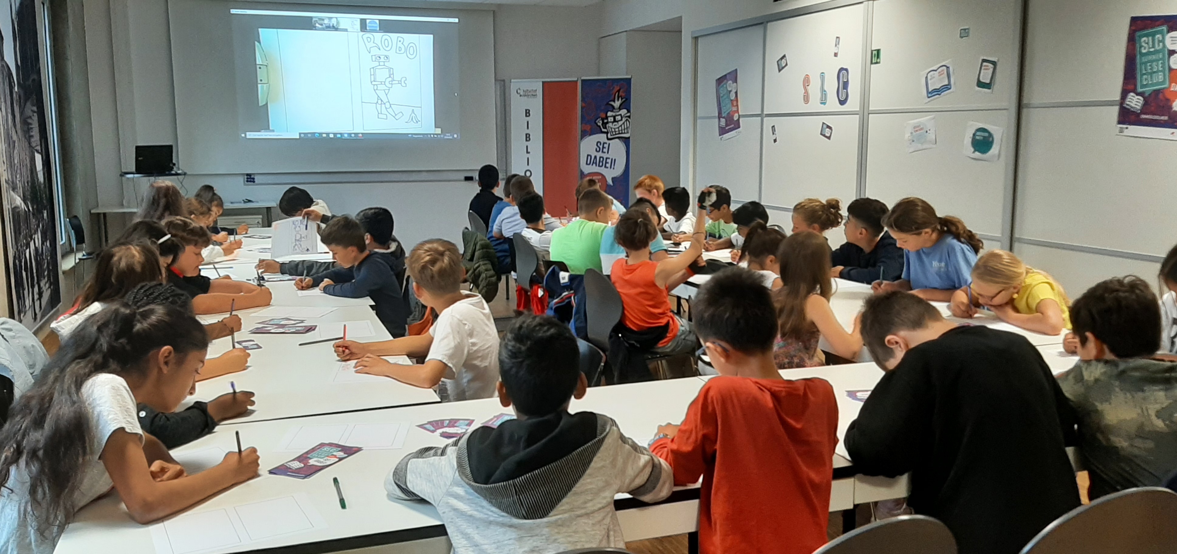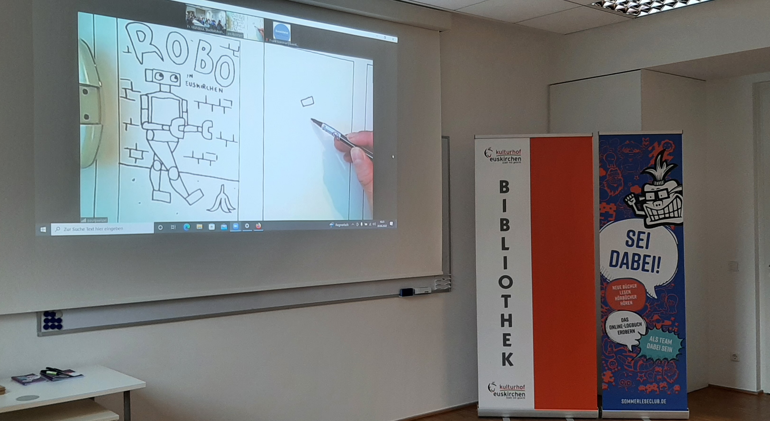 Per Stream-Übertragung konnten die Kinder die ganze Zeit Paul Paetzel beim Gestalten von Robo über die Schulter schauen und jede Linienführung ganz genau mitmachen.