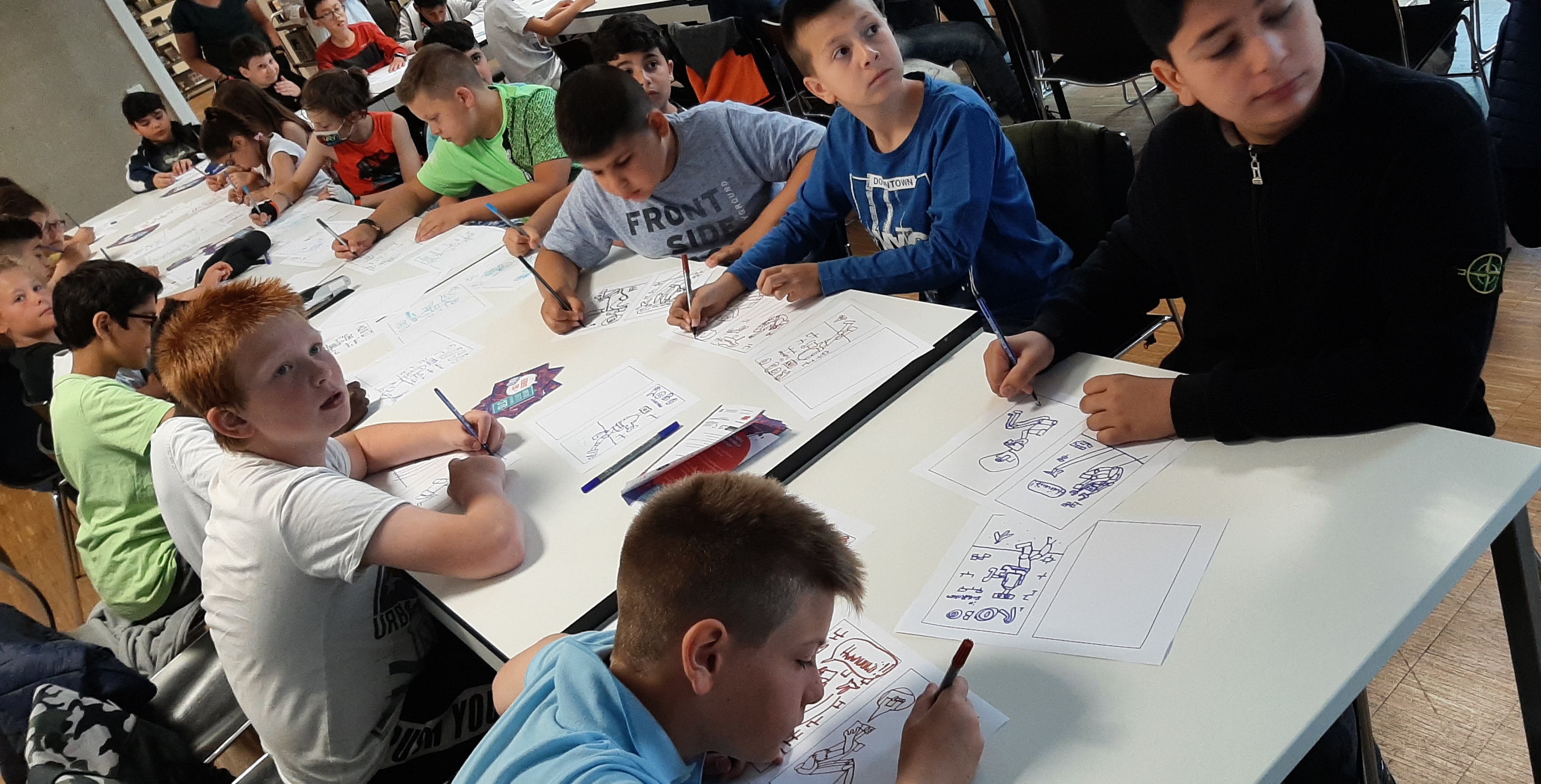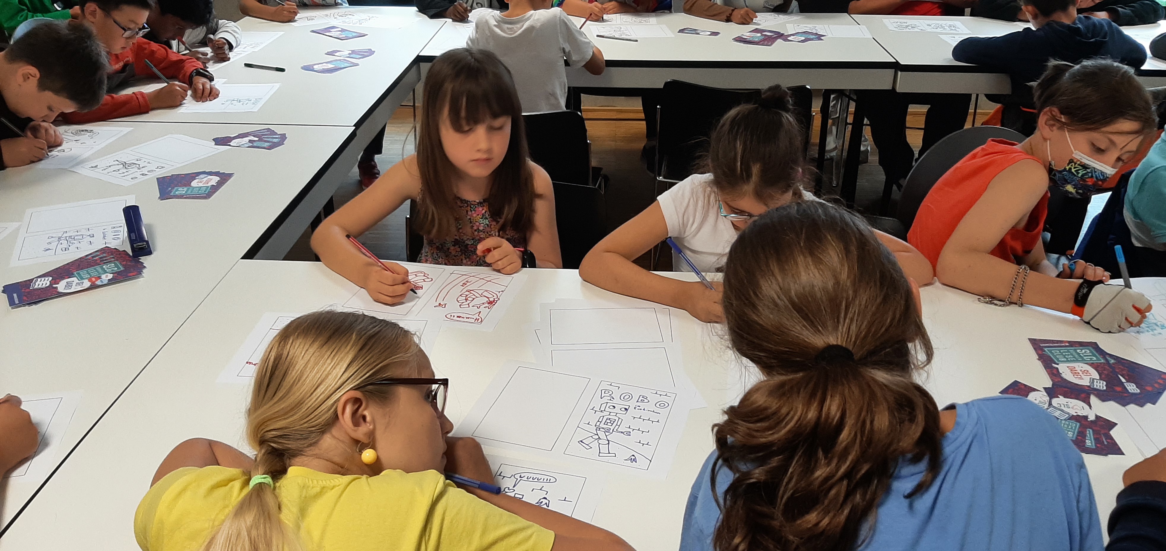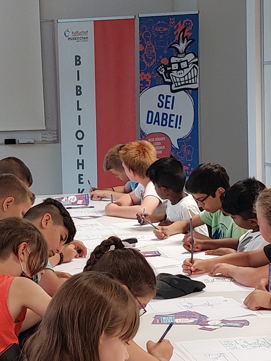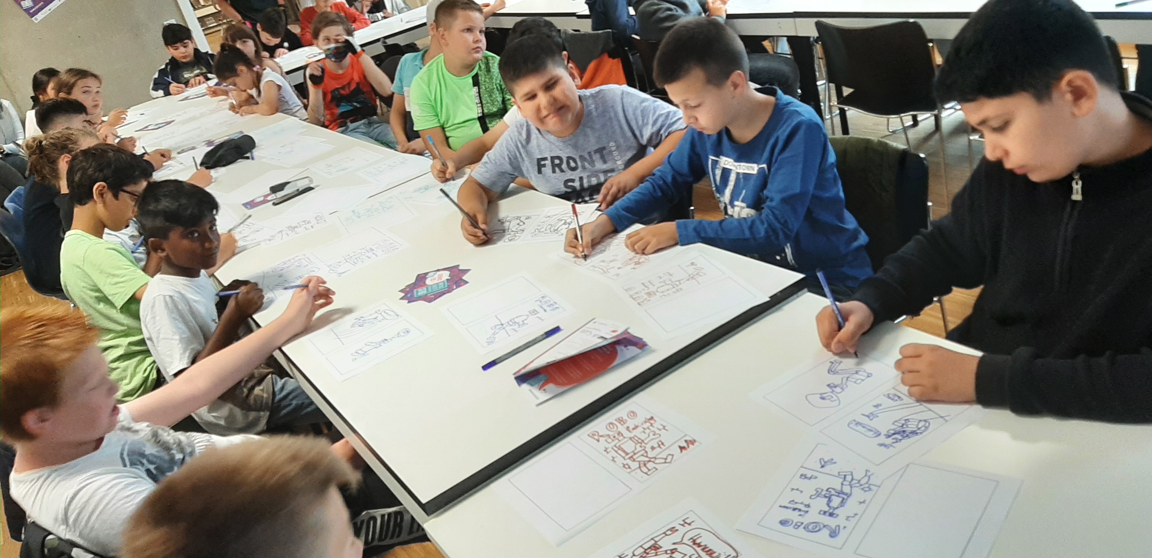 Kurz vor Abschluss ihrer Grundschulzeit konnten sie an einem Mitmach-Comic-Workshop mit Paul Paetzel von der Leseförderungsagentur Eventilator teilnehmen.