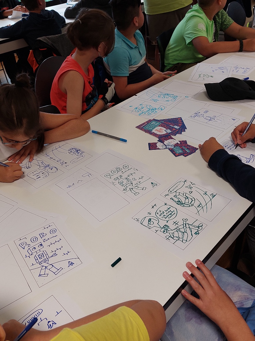Die Kinder hatten großen Spaß daran, sich an der Entwicklung der Figur „Robo“ sowie der Geschichte zu beteiligen und so Grundlagen des „Storytelling“ unmittelbar mitzuerleben.