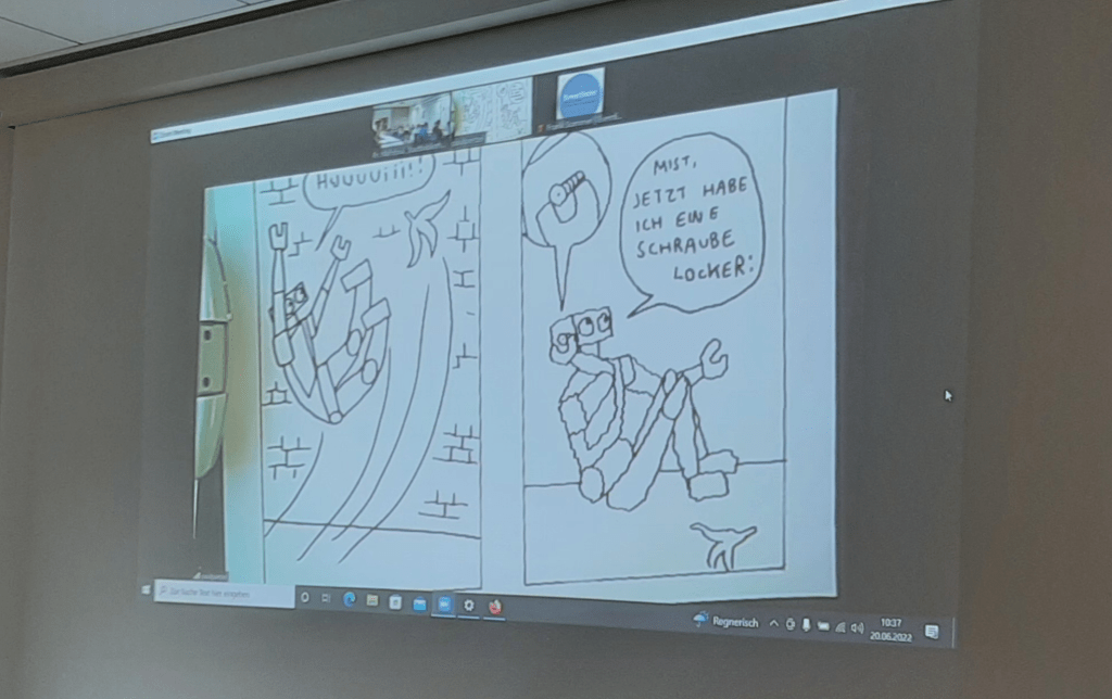 Mit Wortwitz erläuterte Paul Paetzel den Aspekt des „Storytelling“. Denn am Ende hatte Robo „eine Schraube locker“!