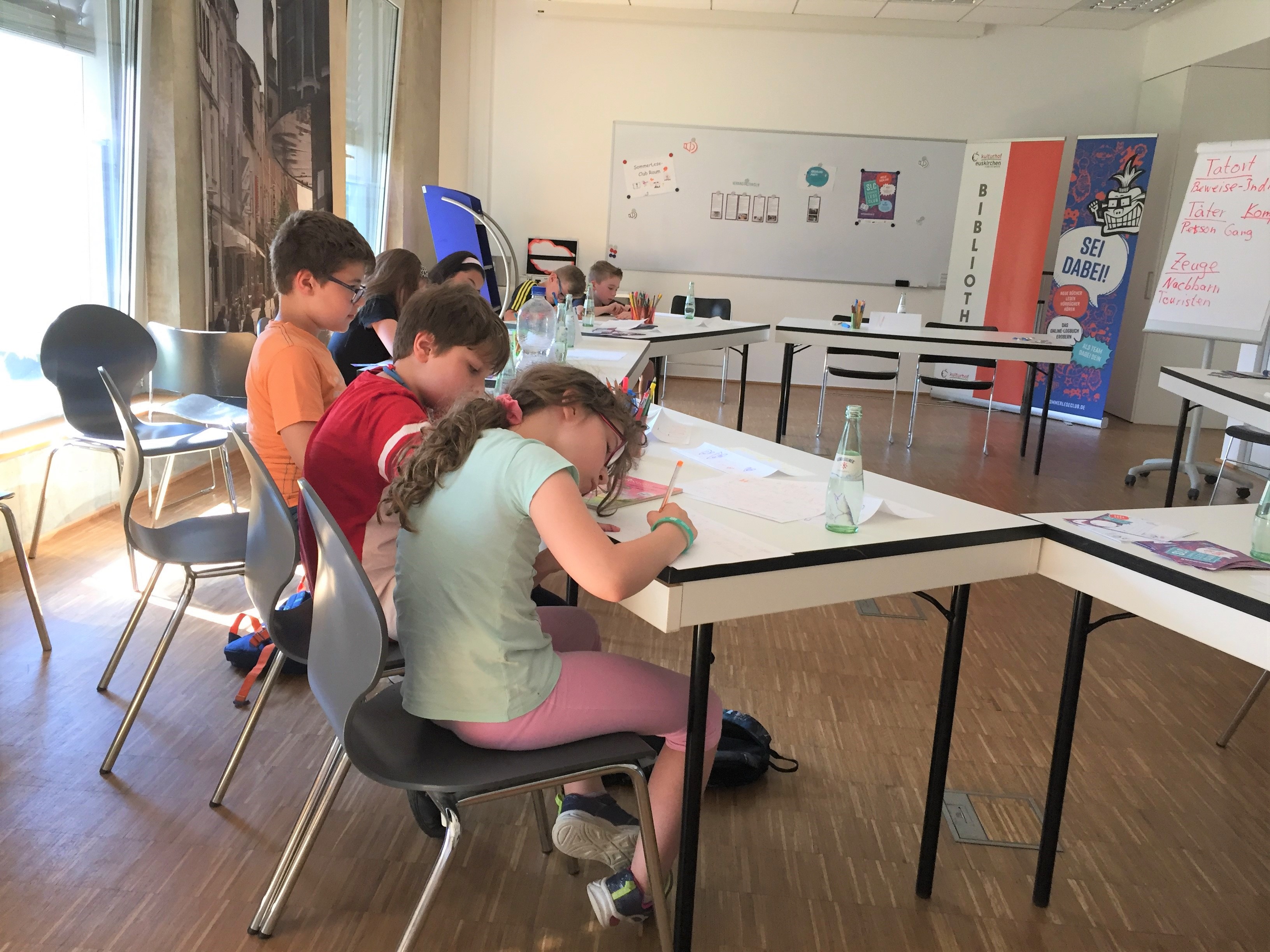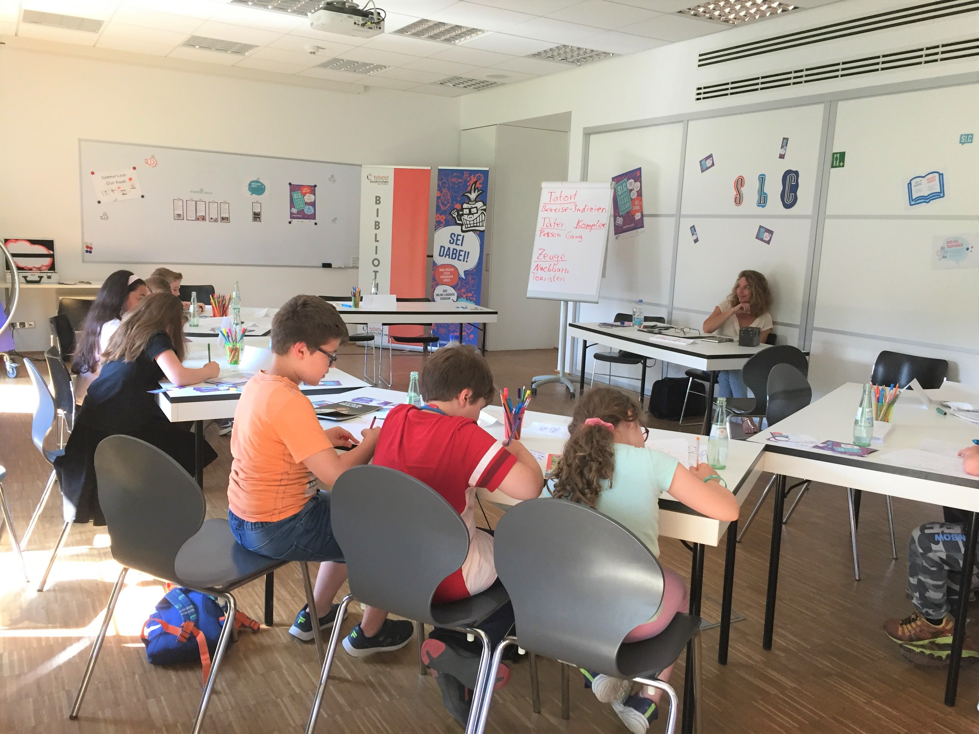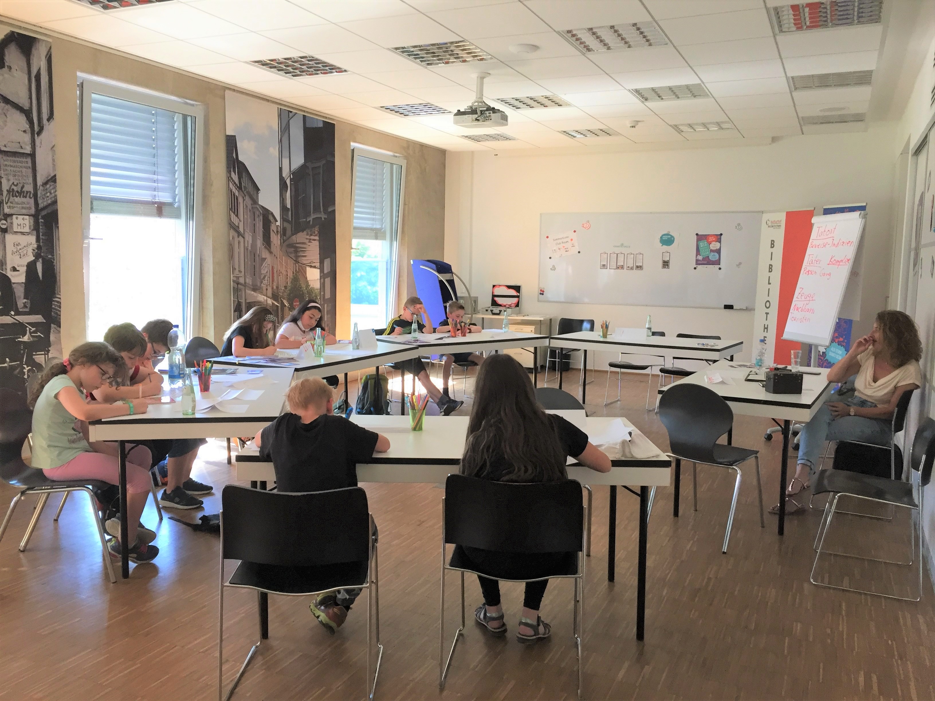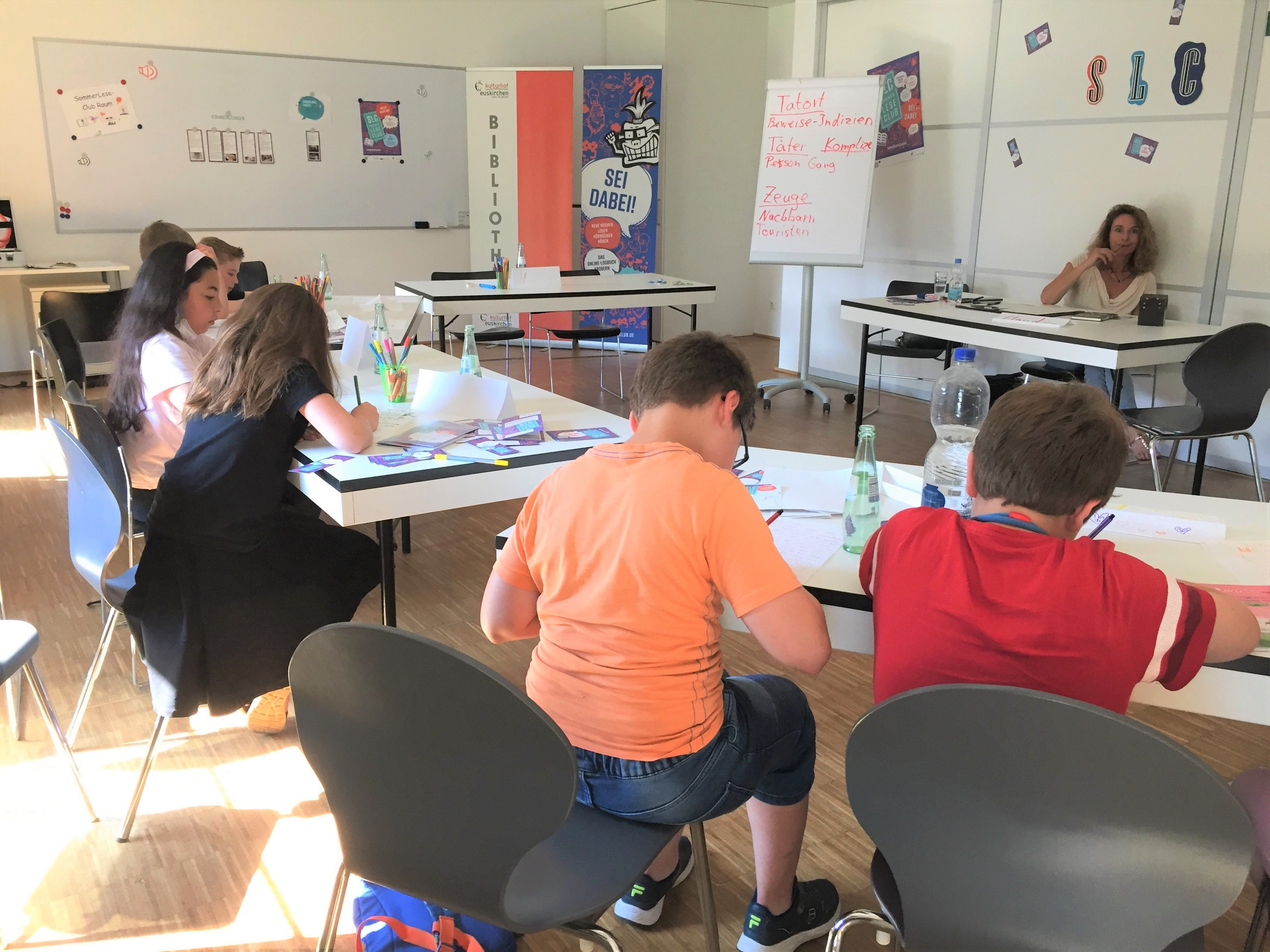 Am 29. Juni fanden sich neun Nachwuchsautor*innen im Clubbereich des Sommerleseclubs ein und entickelten mit Claudia Satory viele interessante Ideen, wie man einen spannenden Krimi schreibt.