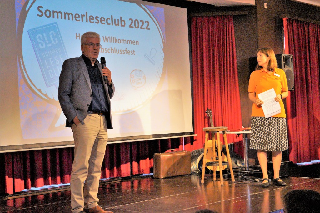 Eröffnet wurde des 17. Abschlussfest des Sommerleseclubs durch den 1. Beigeordneten der Kreisstadt Euskirchen Alfred Jaax und die Leiterin der Bibliothek Julia Rittel.