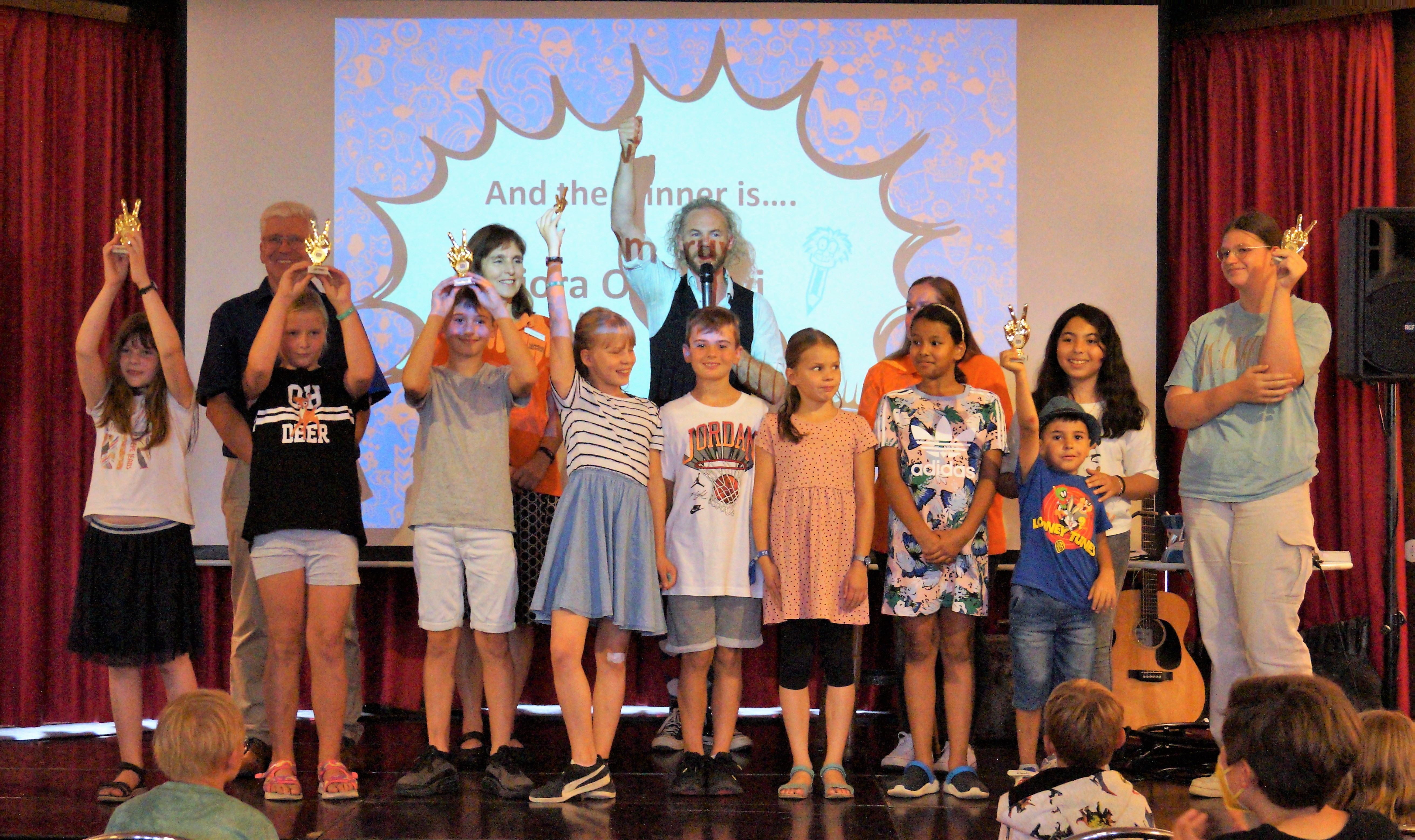 Nach der Oskar-Verleihung verlosten wir unsere diesjährigen Preise für die Kinder. Der Hauptpreis waren zwei Phantasialand-Eintrittskarten. Aber auch über Gutscheine für die Eifel-Therme-Zikkurat, Hochwildpark Rheinland, Wildpark Schmidt Nideggen, Turnbeutel oder verschiedene Gesellschaftsspiele freuten sich die Kinder.