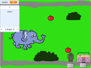 Das erste Spiel hat den Titel „Der Elefant“. Es ist ein Single-Player Spiel, in welchem ein Elefant mithilfe der Tastatur gesteuert wird und auf seinem Weg zu seiner Höhle Äpfel einsammeln muss. In eurem Inventar könnt ihr sehen, wie viele Äpfel ihr bereits eingesammelt habt!