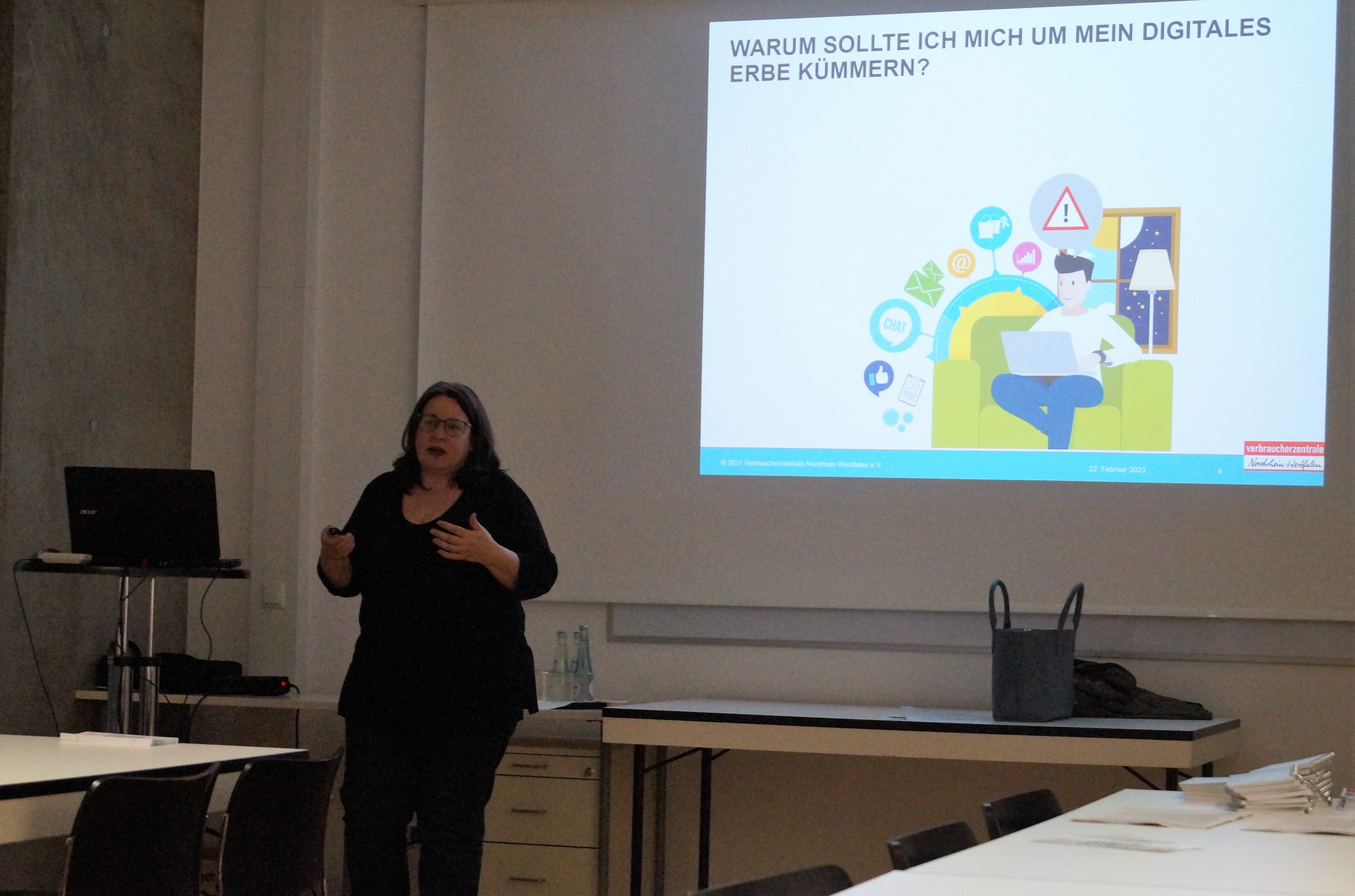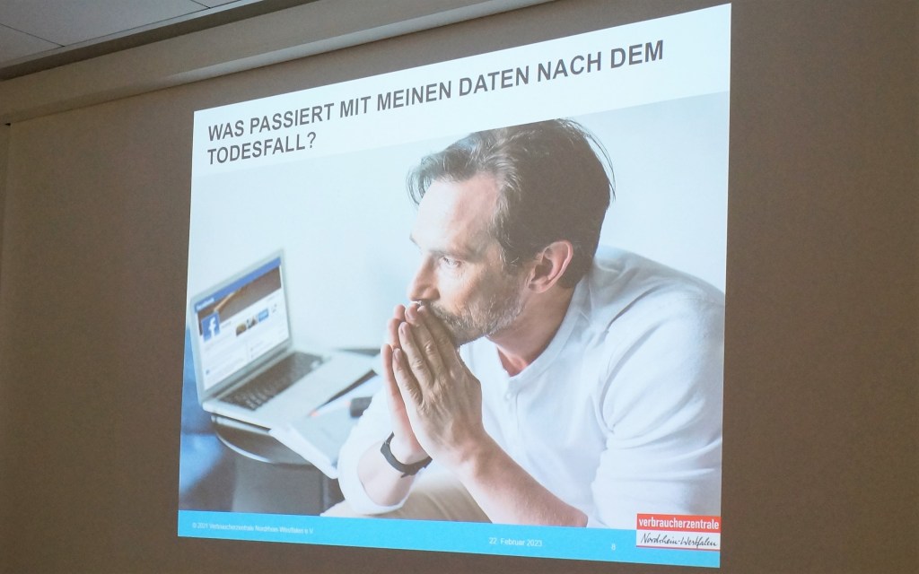 Im Zuge des monatlichen DigitalTreffs referierte Frau Schiffer, Leiterin der Verbraucherzentrale NRW in Euskirchen, Ende Februar 2023 rund um den Sachverhalt „Digitalen Nachlass“.