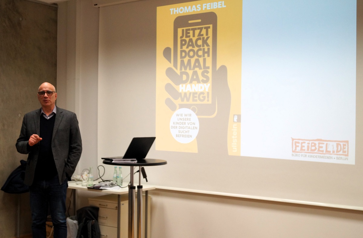 In seinem Ratgeber „Jetzt pack doch mal das Handy weg!“ widmet sich Thomas Feibel dem Haupt-Streitthema in den meisten Familien. Der Autor setzt sich in seinem Vortrag zu seinem aktuellen Buch mit dem Medienkonsum der Kinder und dem Erziehungsalltag der Eltern auseinander. Dabei gibt er Tipps, verriet Tricks und klärt auch über Risiken und Gefahren der Nutzung auf. Der richtige Umgang mit Tablets und Smartphones ist zur erzieherischen Mammutaufgabe geworden. Feibel beantwortet unter anderem Fragen, wie Eltern dem WhatsApp-Dauerchat etwas entgegensetzen können, ob handyfreie Zeiten sinnvoll und was die Erfolgsrezepte anderer Familien sind. Außerdem zeigte er den Zuhörer*innen an diesem Abend auf, wie sich exklusive Zeit für die Familie zurückerobern lässt.