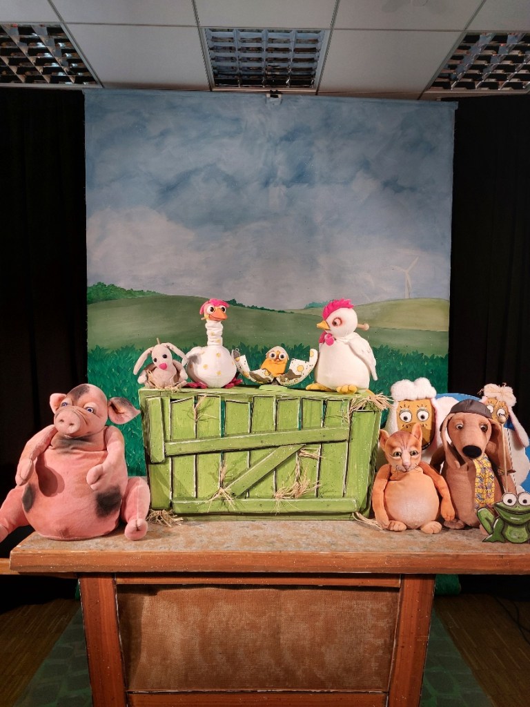 Im Mai 2023 war das Figurentheater Marmelock mit dem Stück „Ach du Schreck – das Ei ist weg“ bei uns im Haus. 55 Kinder mit ihren Eltern und Großeltern lauschten der bezaubernden Geschichte vom Hühnerhof.