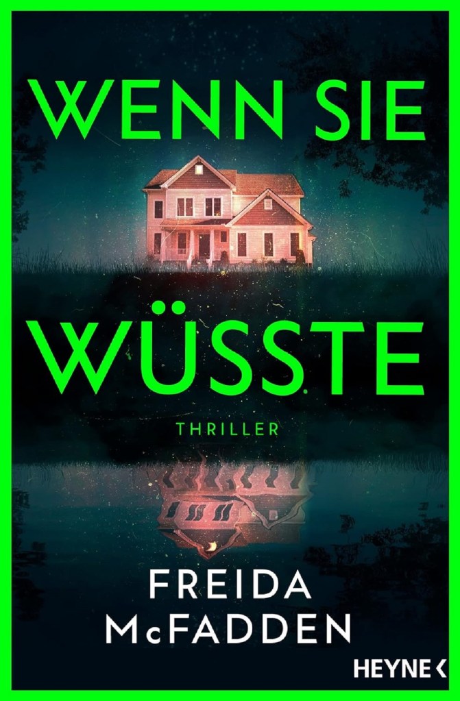 ich bin auf das Buch von Freida McFadden „Wenn sie wüsste“ durch das sehr schön gestaltete Cover aufmerksam geworden. Mit seinen leuchtend grünen Seiten und dem düsteren Herrenhaus macht es mich sofort neugierig.