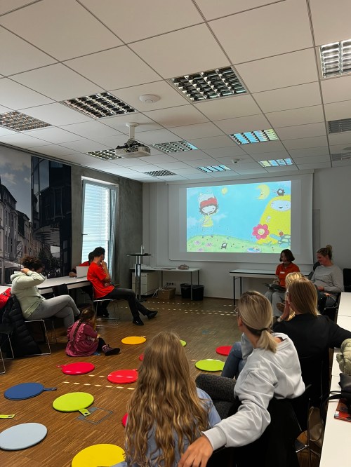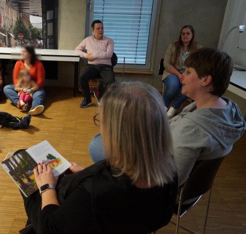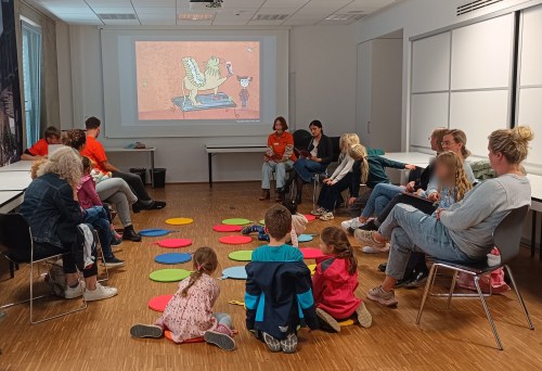 Im Oktober gab es weitere Highlights in unserem Programm. Wir starteten den Monat mit einem mehrsprachigen Bilderbuchfest. Hierfür schlossen wir eine Kooperation mit dem Welcome Parkhotel Euskirchen, die uns einige Vorleser*innen vermittelten. So konnten wir unsere Bücher in einer vielfältigen Sprachauswahl vorlesen.