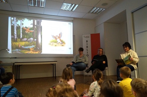 Im März fand die Internationale Woche gegen Rassismus statt. Auch die Stadtbibliothek war mit einer Veranstaltung vertreten. Und zwar gab es ein Bilderbuchkino zum Thema „Menschenrechte“.