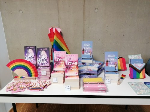 Natürlich gab es auch wieder einen Büchertisch der Buchhandlung Thalia, an dem man sich noch mit Literatur der Autorin sowie unterschiedlichen Goodies der Buchhandlung Thalia versorgen konnte.