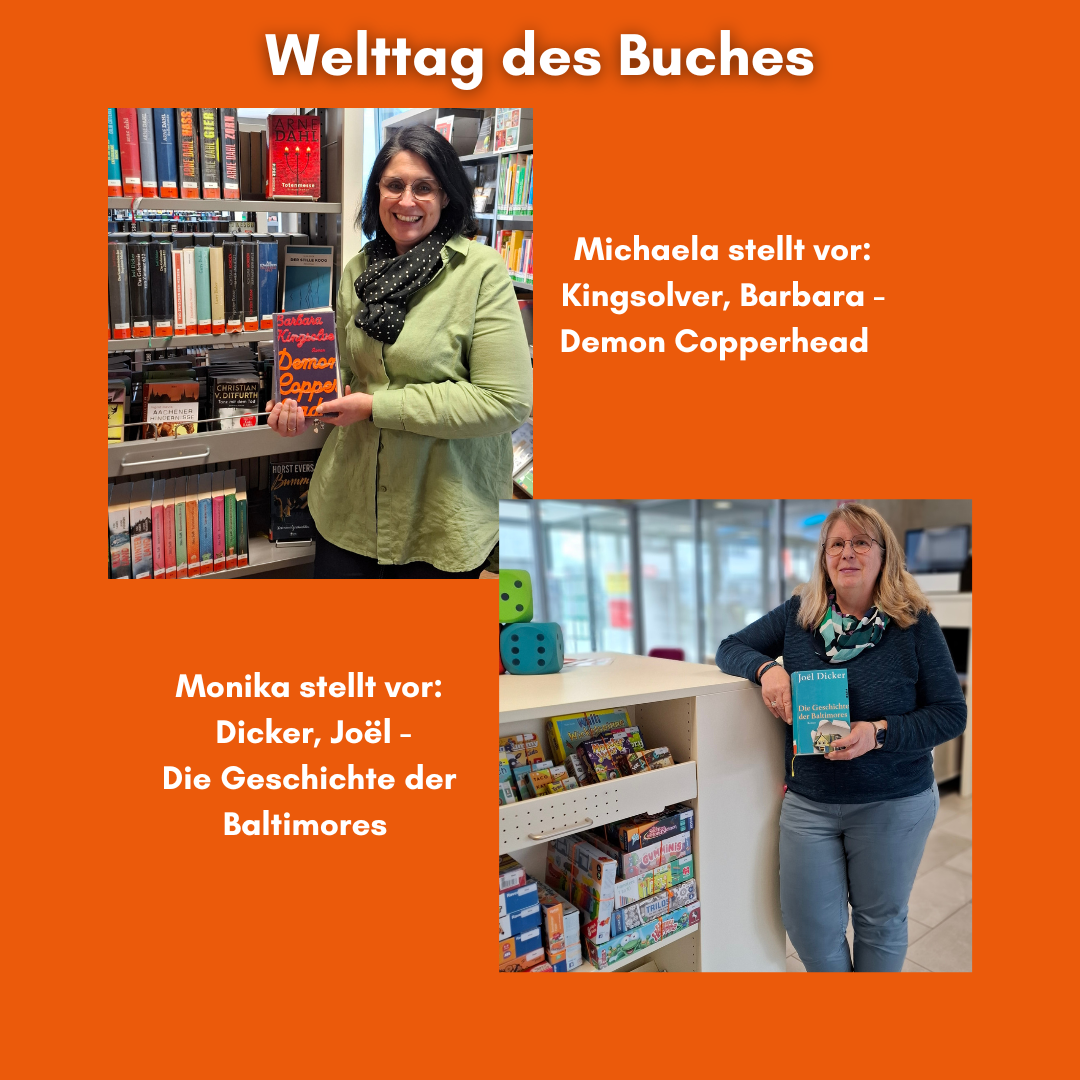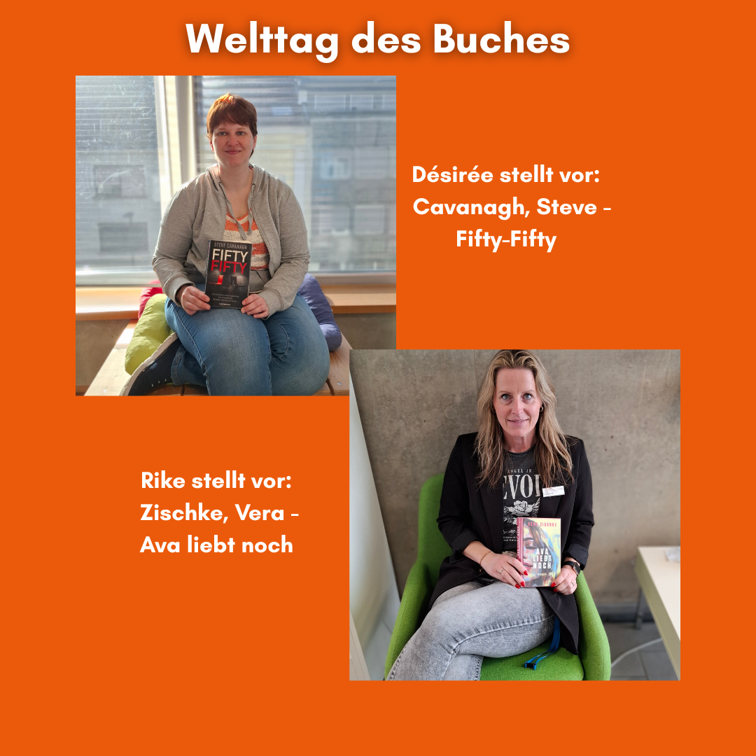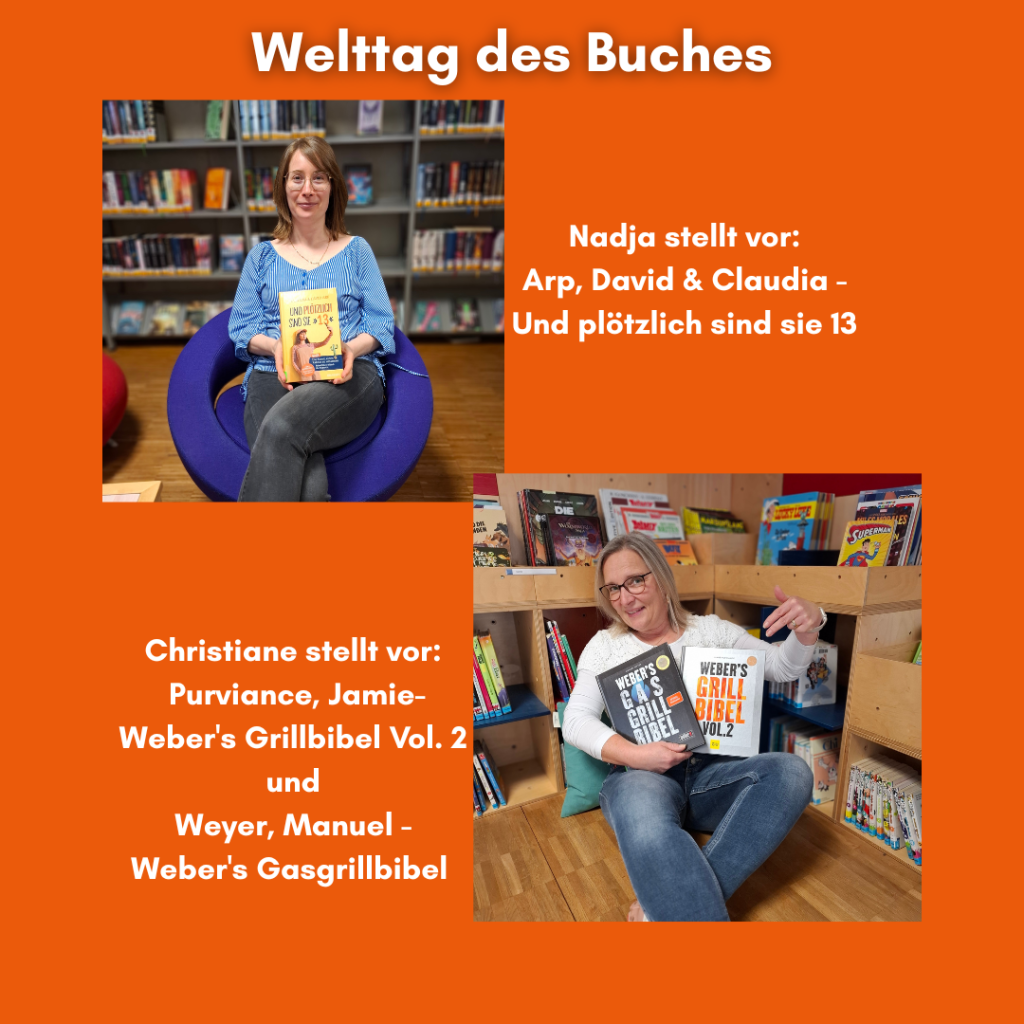 heute ist Welttag des Buches. Diesen Anlass wollen wir nutzen, um euch mal zu zeigen, was die Mitarbeiter*innen der Stadtbibliothek gerne in ihrer Freizeit lesen bzw. was sie euch so empfehlen können.